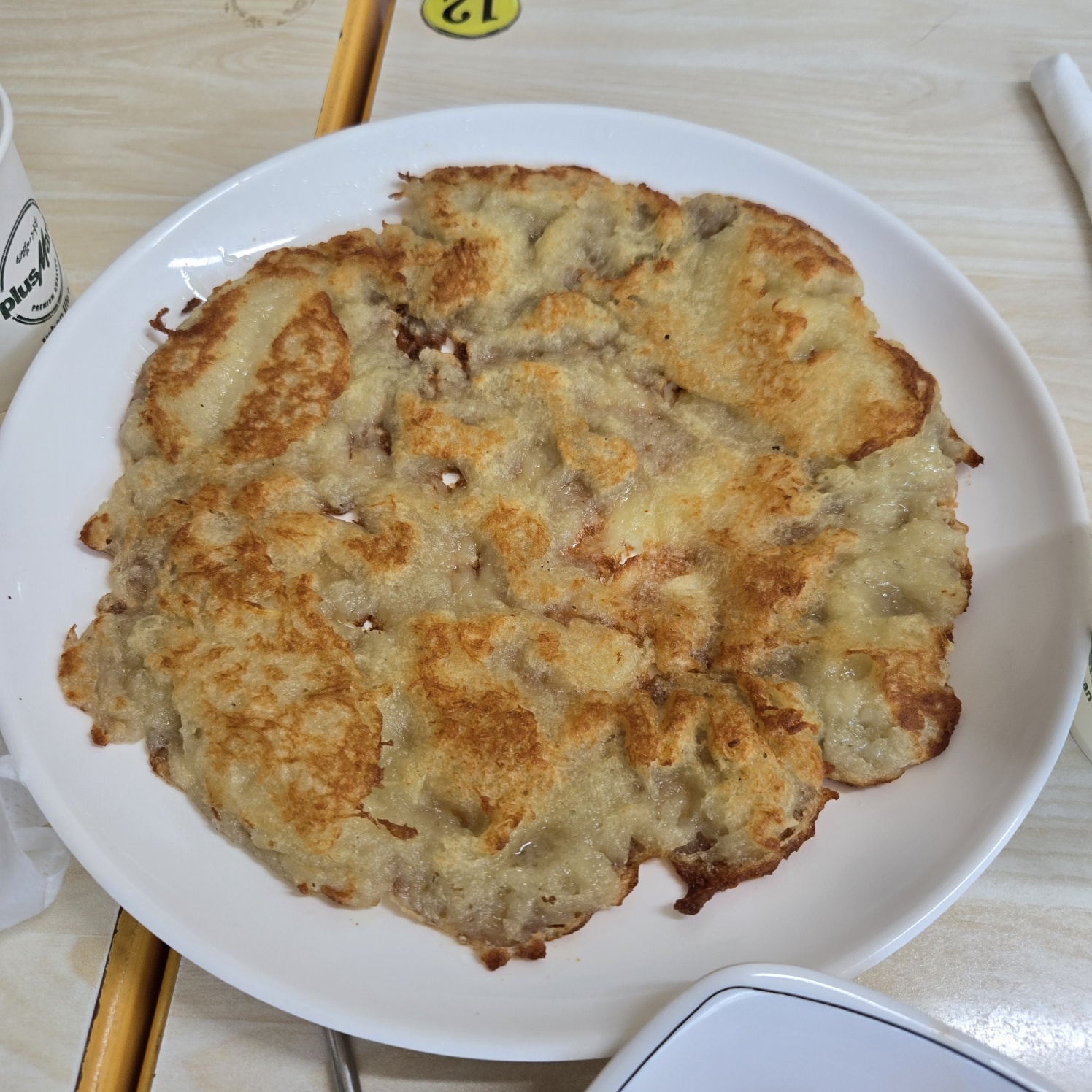 숨겨진 메뉴는 아니지만 감자전은 진짜 맛있습니다. 7명이 가서 막국수와 수육도 충분히 시켰는데 감자전은 1장을 시킨 후에 너무 맛있어서 1장을 추가했고 먹다가 다시 1장을 추가해서 총 3장을 먹었습니다. 감자의 도시, 강원도여서 그런지 감자전이 매우 맛있었습니다. 빠삭함과 부드러움이 공존합니다. 첫 번째 감자전이 나올 때 깜빡하셨는지 간장이 나오지 않았는데 그럼에도 불구하고 모두 만족스럽게 먹었고 2번째 감자전이 나올 때 간장이 나왔는데 간장과 함께 먹은 감자전은 추천을 무조건 할 수밖에 없는 메뉴가 되었습니다.