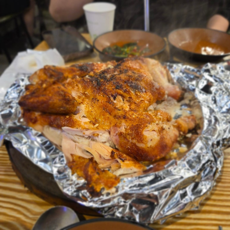 닭고기의 크기에 대한 아쉬움이 있었다는 의견도 있었지만, 그나마 최근에는 작아졌던 닭보다는 커진 느낌이라는 리뷰도 많습니다. 보통은 시키면 거의 바로 나올정도로 많은 닭을 한꺼번에 굽고 있지만 손님이 몰려서 닭이 다 떨어지면 기다려야 하는 경우도 있습니다. 특히 야식으로 찾으신다면 대기 시간을 고려하셔야 합니다. 하지만 조금 늦게 나온 닭이라도 그 맛과 식감은 충분히 기다릴 가치가 있습니다.